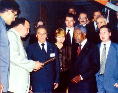 Obtěžovat podobným dotazem Kofiho Annana nebo Sophii Lorenovu se média neodvážila nebo to možná ani nepovažovala za nutné. O tom nás bezpochyby přesvědčí i fotografie z webové stránky MKZPL, jež dokládá, jak do organizace vstoupil v roce 2002 právě Kofi Annan a byl vyznamenán titulem „Zasloužilý ochránce lidských práv“ (mimochodem stejným titulem, jaký teď má i Kadyrov). Tato fotografie, pořízená nejspíš někde na schodišti nebo v ohybu chodby, zachycuje generálního tajemníka OSN a jeho doprovod zaskočené jakýmisi podivnými osobami a pravděpodobně vůbec netušící, o koho se jedná a co jim tyto osoby chtějí.